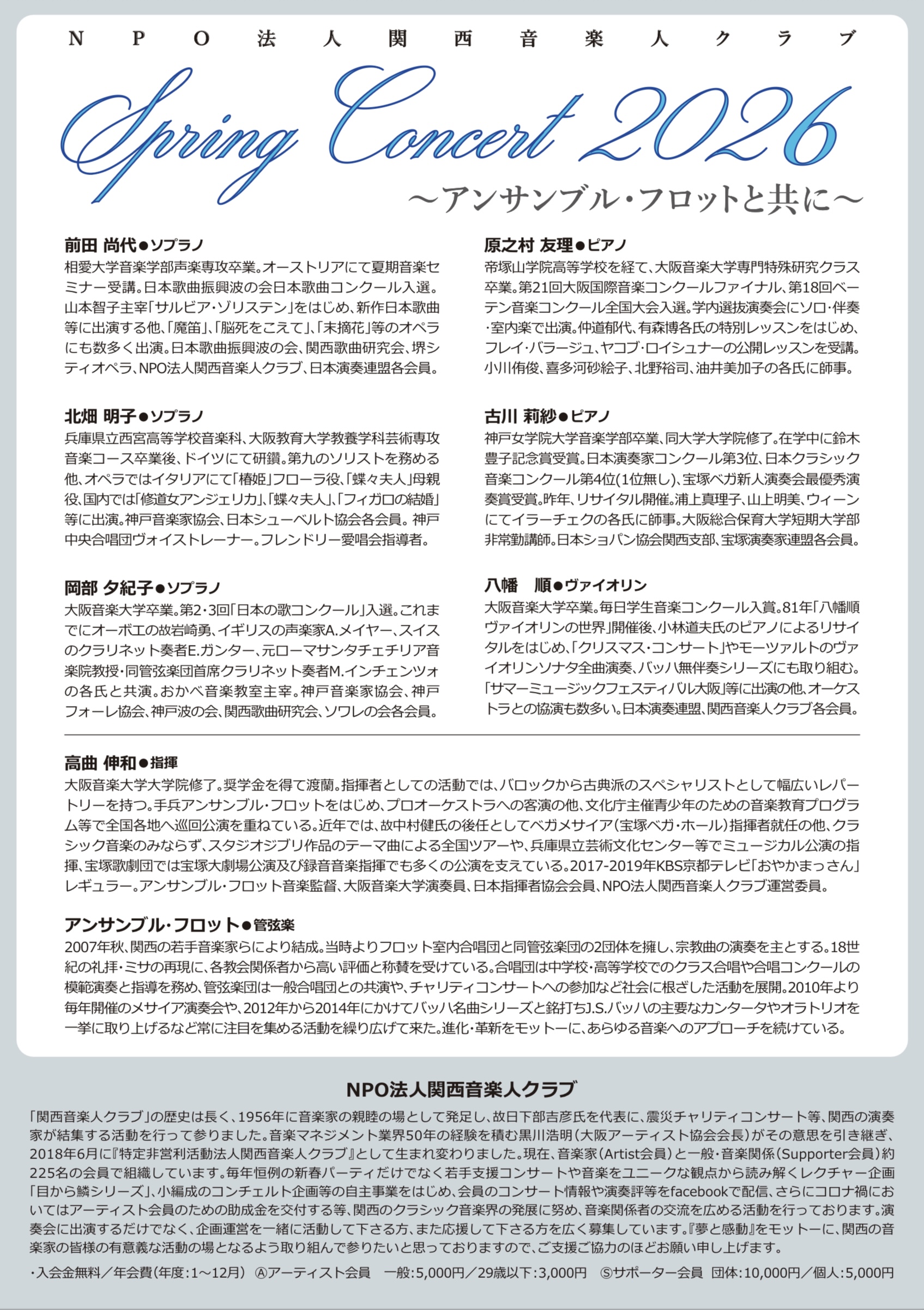 NPO法人関西音楽人クラブ Spring Concert 2026 ~アンサンブル・フロットと共に~